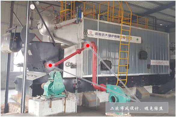 鍋爐配置一次風機及二次風機,合理布置配風比例,燃燒充分,避免結焦,延長鍋爐使用壽命;